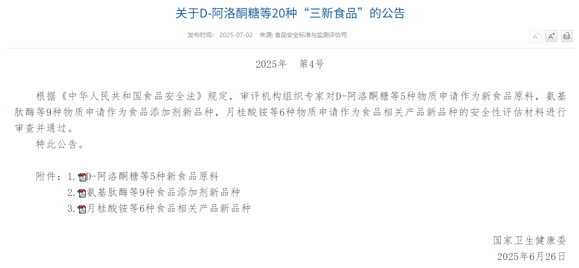 解讀《關(guān)于D-阿洛酮糖等20種“三新食品”的公告》(2025年第4號(hào))