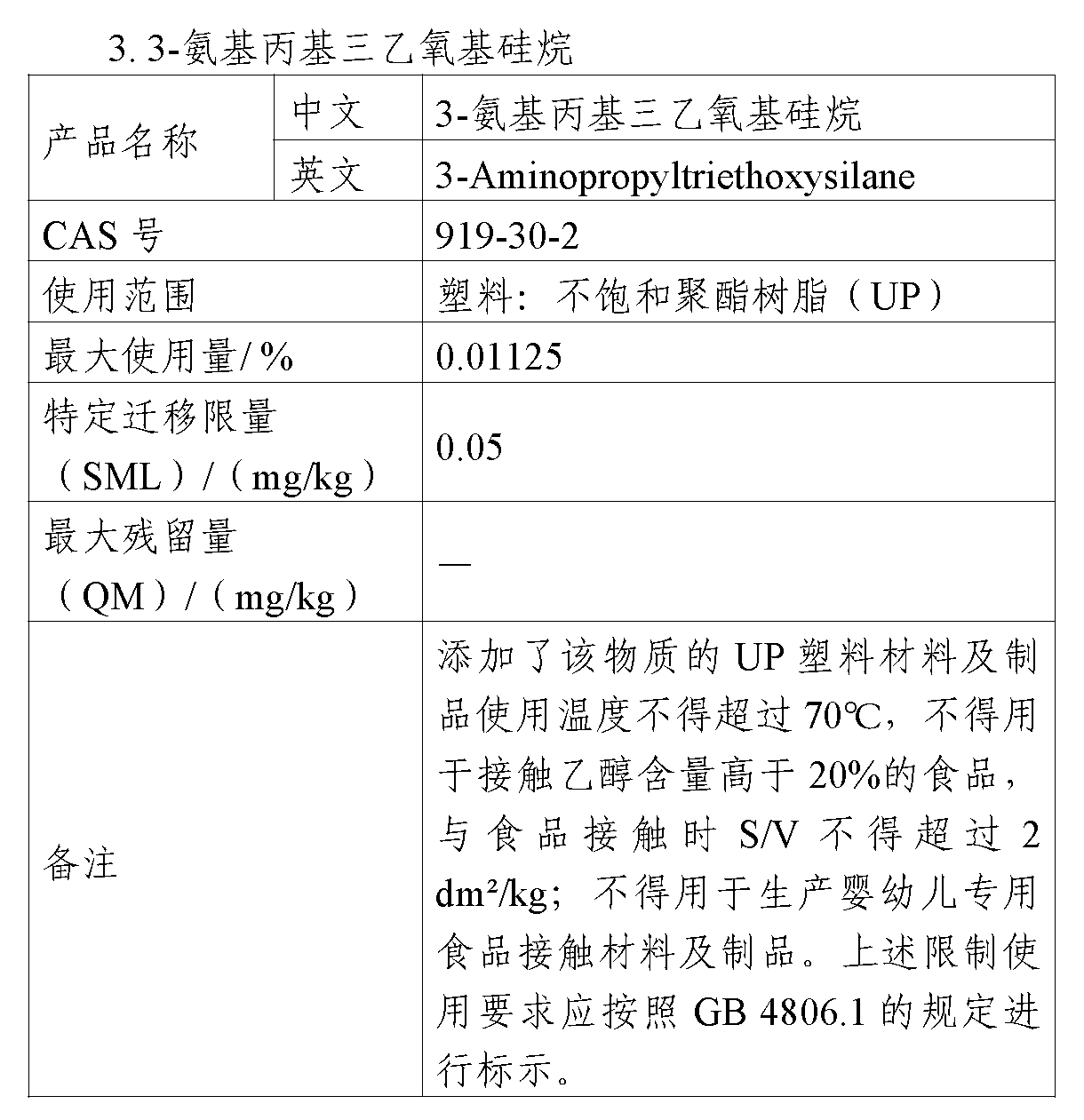 《食品安全國(guó)家標(biāo)準(zhǔn) 食品接觸材料及制品用添加劑使用標(biāo)準(zhǔn)》(GB 9685-2016)、原國(guó)家衛(wèi)生計(jì)生委2018年第3號(hào)公告和國(guó)家衛(wèi)生健康委2020年第4號(hào)公告已批準(zhǔn)該物質(zhì)作為添加劑用于涂料及涂層、黏合劑、聚酰胺(PA)和聚苯硫醚(PPS)塑料材料及制品。本次公告批準(zhǔn)其使用范圍擴(kuò)大至食品接觸用不飽和聚酯樹(shù)脂(UP)塑料材料及制品。該物質(zhì)可提高不飽和聚酯樹(shù)脂與玻璃纖維之間的界面相容性。經(jīng)安全性評(píng)估,添加了該物質(zhì)的UP塑料材料及制品在不高于70℃、所接觸食品的乙醇含量不高于20%且與食品接觸時(shí)S/V不超過(guò)2 dm2/kg的情形下可安全使用。鑒于3-氨基丙基三乙氧基硅烷用于嬰幼兒人群的安全性資料不足,從風(fēng)險(xiǎn)預(yù)防原則考慮,限制該類(lèi)材料用于生產(chǎn)嬰幼兒專(zhuān)用食品接觸材料及制品。其他使用要求按照公告規(guī)定執(zhí)行。歐盟委員會(huì)、德國(guó)聯(lián)邦風(fēng)險(xiǎn)評(píng)估研究所和瑞士聯(lián)邦食品安全和獸醫(yī)事務(wù)局均允許該物質(zhì)用于食品接觸用UP塑料材料及制品。