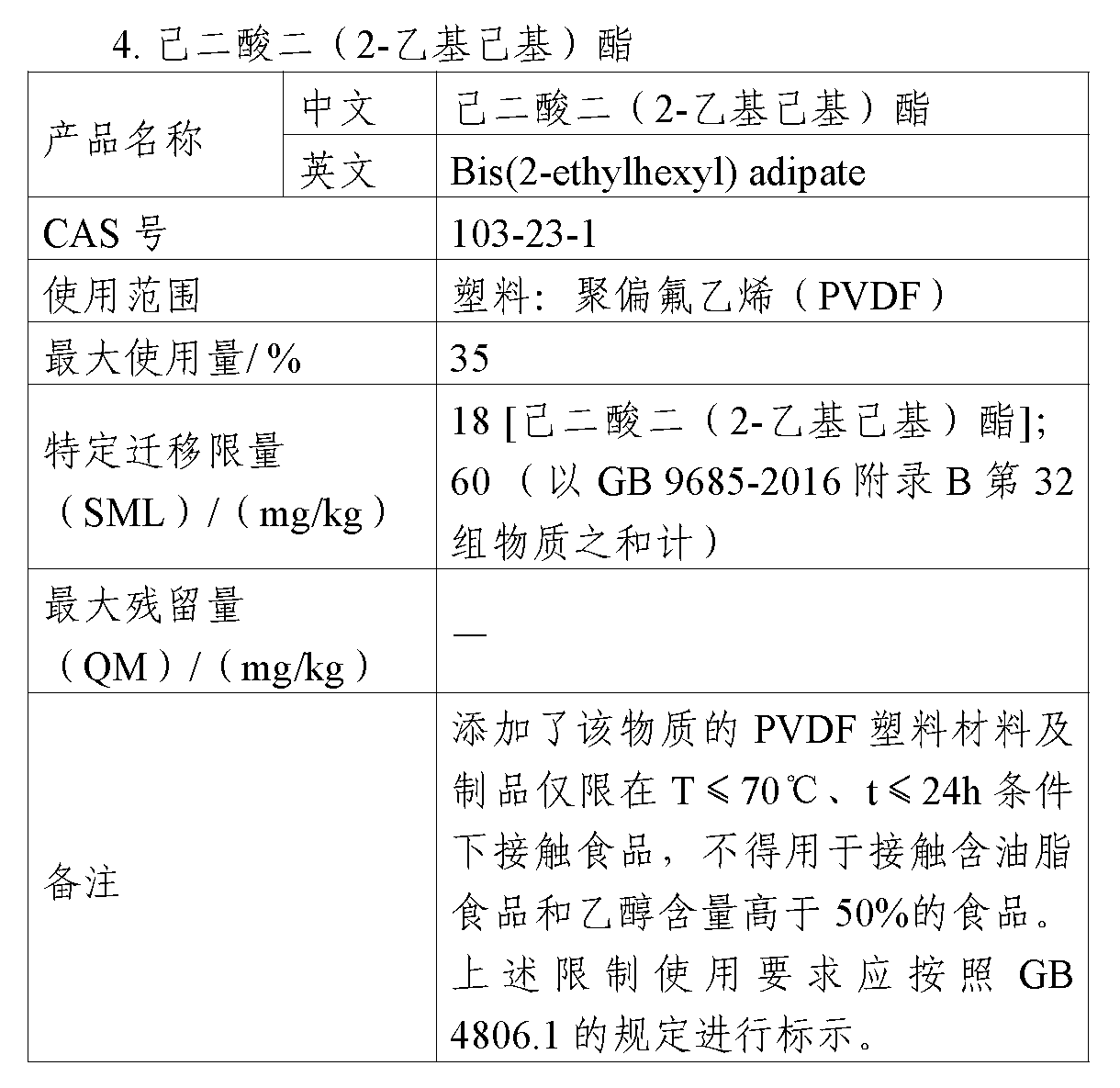 《食品安全國(guó)家標(biāo)準(zhǔn) 食品接觸材料及制品用添加劑使用標(biāo)準(zhǔn)》(GB 9685-2016)已批準(zhǔn)該物質(zhì)作為添加劑用于食品接觸用橡膠、黏合劑以及聚乙烯(PE)、聚丙烯(PP)和聚氯乙烯(PVC)等多種塑料材料及制品。本次公告批準(zhǔn)其使用范圍擴(kuò)大至食品接觸用聚偏氟乙烯(PVDF)塑料材料及制品。該物質(zhì)作為一種增塑劑,可控制PVDF的熔融度,并提高PVDF塑料材料及制品的可塑性。經(jīng)安全性評(píng)估,添加了該物質(zhì)的PVDF塑料材料及制品在不高于70℃、使用時(shí)間不超過(guò)24小時(shí)、所接觸食品表面不含游離脂肪且乙醇含量不高于50%的情形下,所有人群均可安全使用。其他使用要求按照公告規(guī)定執(zhí)行。美國(guó)食品藥品管理局、歐盟委員會(huì)和南方共同市場(chǎng)均允許該物質(zhì)用于食品接觸用PVDF塑料材料及制品。