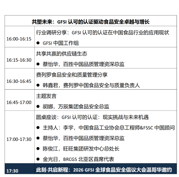GFSI中國主題大會將于9月12日舉行。會議將通過專題分享、實踐案例解讀與圓桌討論等形式,匯聚行業(yè)智慧,共同探討當前食品行業(yè)面臨的食品安全挑戰(zhàn)與創(chuàng)新解決方案。本次大會重點關(guān)注食品安全數(shù)字化轉(zhuǎn)型、能力建設(shè)實踐與GFSI認可的認證三大核心議題。