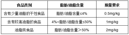 新發(fā)布的歐盟PAFF《新型食品和食物鏈的毒理學(xué)安全-2022/04/21》中對(duì)食品中芳香烴礦物油(MOAH)的規(guī)定從嬰幼兒食品擴(kuò)展到包括嬰幼兒食品在內(nèi)的所有食品類型,并根據(jù)食品中脂肪含量規(guī)定了不同限量。