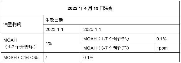 2022年4月21日,歐盟植物、動(dòng)物、食品和飼料委員會(huì)(PAFF)發(fā)布《新型食品和食物鏈的毒理學(xué)安全-2022/04/21》,從范圍和限量?jī)煞矫婕訃?yán)對(duì)食品中芳香烴礦物油(MOAH)的管控,由歐盟成員國(guó)執(zhí)行召回等措施,即日實(shí)施。