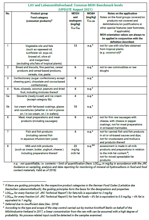 2021年8月,德國(guó)發(fā)布了食品中礦物油碳?xì)浠衔?(MOH) 的基準(zhǔn)水平。
