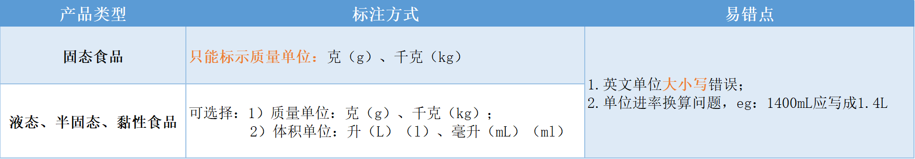 凈含量應(yīng)與食品名稱在包裝物或容器的同一展示版面標(biāo)示。