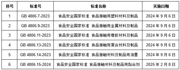 以上兩個(gè)公告合計(jì)發(fā)布了6個(gè)食品接觸有機(jī)材料的產(chǎn)品標(biāo)準(zhǔn),具體見(jiàn)下表: