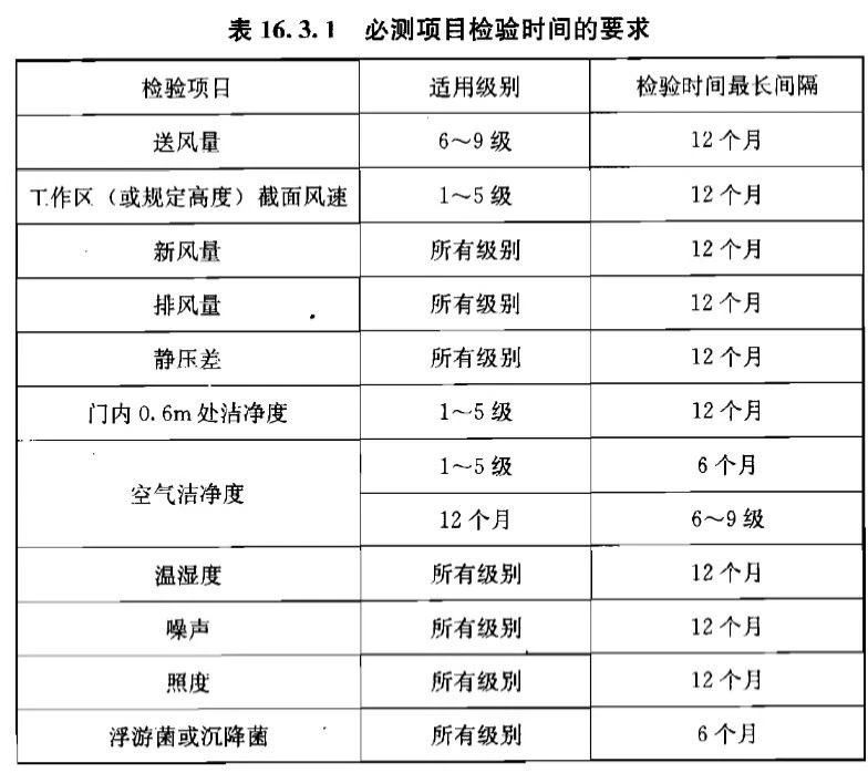 GB 50591-2010 《潔凈室施工及驗(yàn)收規(guī)范》中部分項(xiàng)目要求的頻率:
