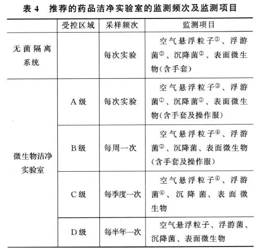 【《中國(guó)藥典》2020版四部9205 藥品潔凈實(shí)驗(yàn)室微生物監(jiān)測(cè)和控制指導(dǎo)原則】中部分參數(shù)要求的頻率: