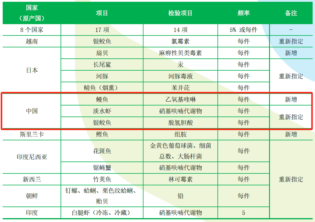 2024年7月2日,韓國(guó)食藥部(MFDS)發(fā)布2024-82號(hào)通知,發(fā)布2024年下半年進(jìn)口水產(chǎn)品重點(diǎn)管理對(duì)象品種監(jiān)管計(jì)劃。主要內(nèi)容包括: