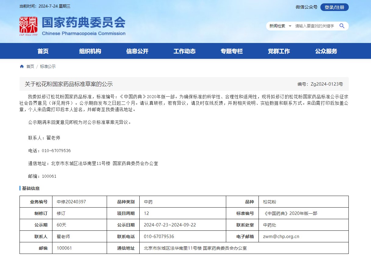松花粉:增訂了松花粉浸出物項(xiàng)。