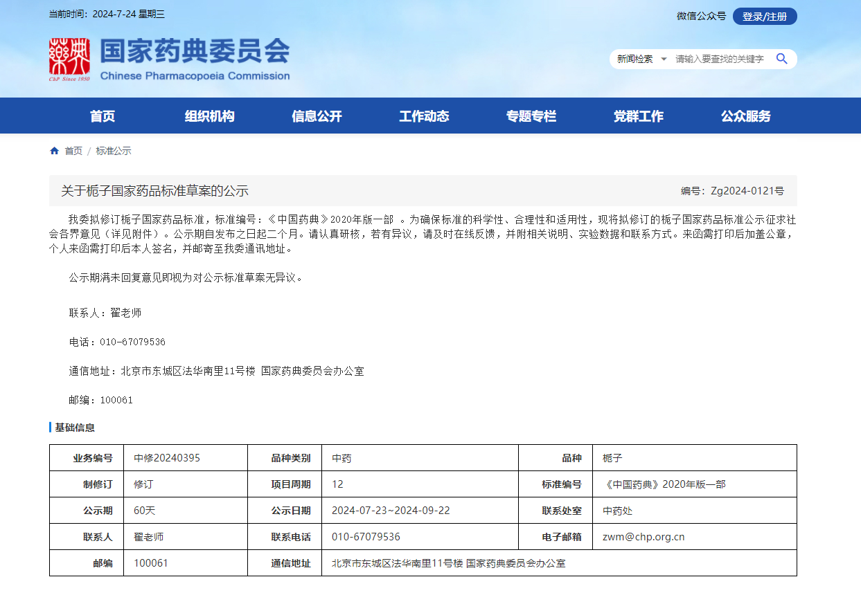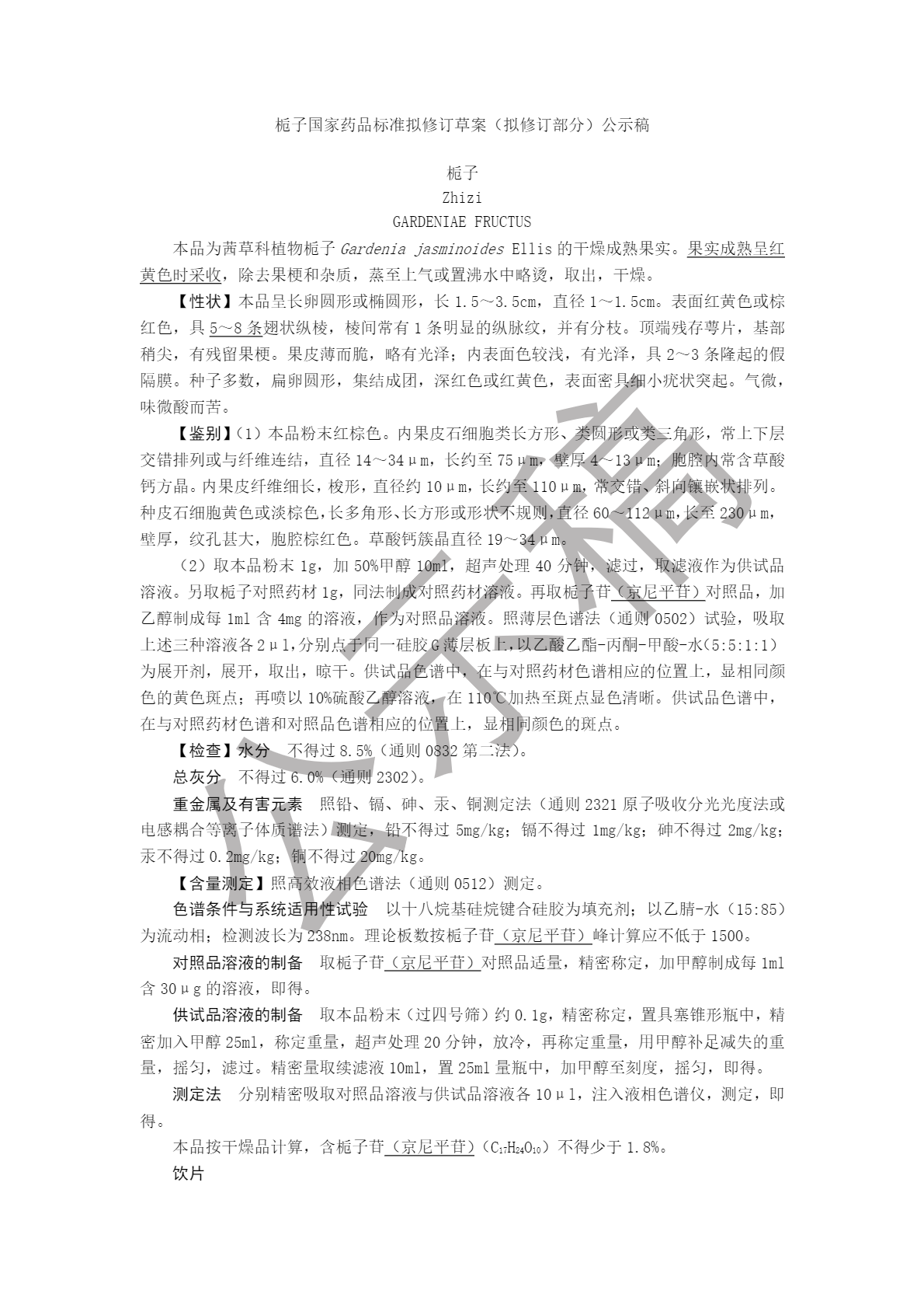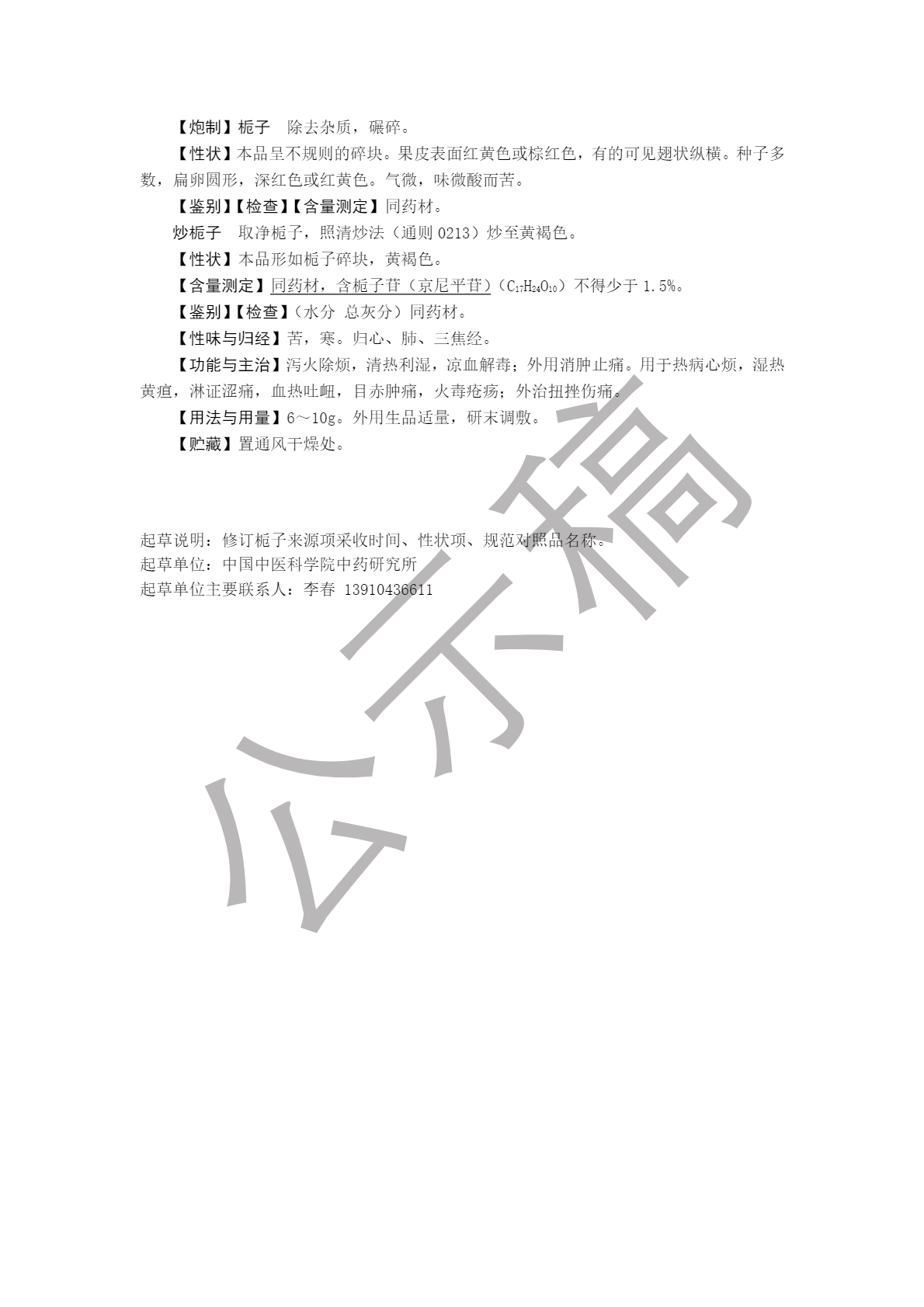 梔 子:修訂梔子來(lái)源項(xiàng)采收時(shí)間、性狀項(xiàng)、規(guī)范對(duì)照品名稱。