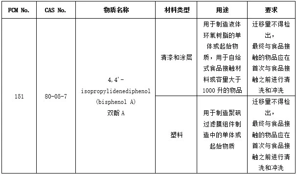 5、雙酚a和其他有害雙酚類及有害雙酚衍生物的聯(lián)合清單,授權用于特定應用的食品接觸材料和物品的制造