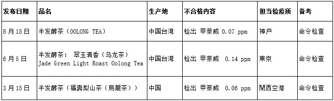 截至2024年8月28日,2024年我國出口茶葉被日本通報(bào)的情況如下: