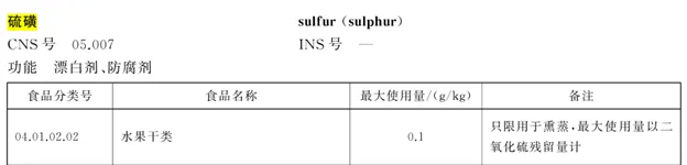 工業(yè)硫磺是應(yīng)用于工業(yè)領(lǐng)域的化工產(chǎn)品,含有大量的砷,因此國家明確規(guī)定工業(yè)硫磺不得用于食品加工。即使是食品級硫磺,在《食品安全國家標(biāo)準(zhǔn) 食品添加劑使用標(biāo)準(zhǔn)》(GB2760-2024)中也有明確規(guī)定,僅限作為漂白劑、防腐劑用于特定產(chǎn)品,同樣有最大使用量: