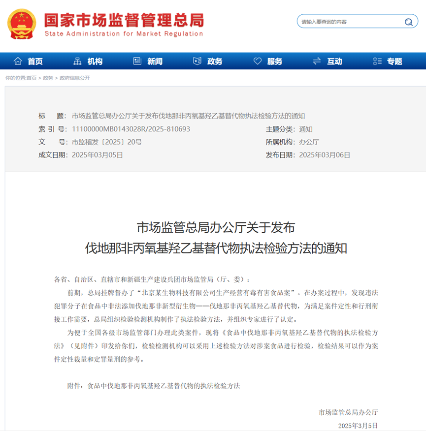 2025年初,國家市場監(jiān)管總局連續(xù)發(fā)布食品安全違禁添加物專項整治文件,強(qiáng)化非法添加行為打擊力度。